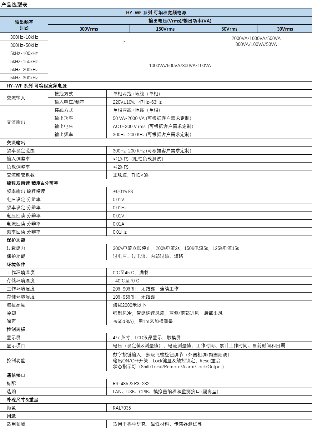 可编程宽频电源的详实介绍简介航裕电源HY-WF系列可编程宽带电源,输出频率300hz-200khz,输出功率50va-2000va。输出电压AC0-300Vrms,适用于科研,磁性材质,传感器应用领域,例如研发和测试。航裕电源HY-WF系列可编程宽带电源的简要介绍,输出频率300hz-200khz,输出功率50va-2000va。输出电压AC0-300Vrms,适用于科研,磁性材质,传感器研发测试等应用领域。简要介绍航裕电源HY-WF系列可编程宽带电源,输出频率300hz-200khz,输出电源50va-2000va输出电压AC0-300Vrms,适用于科研,磁性材质,传感器研发测试等应用领域。简要介绍航裕电源HY-WF系列可编程宽带电源,输出频率300hz-200khz,输出电源50va-2000va输出电压AC0-300Vrms,适用于科研,磁性材质,传感器研发测试等应用领域。简要介绍航裕电源HY-WF系列可编程宽带电源,输出频率300hz-200khz,输出电源50va-2000va输出电压AC0-300Vrms,适用于科研,磁性材质,传感器研发测试等应用领域。简要介绍航裕电源HY-WF系列可编程宽带电源,输出频率300hz-200khz,输出电源50va-2000va输出电压AC0-300Vrms,适用于科研,磁性材料,传感器研发测试等应用领域。航裕电源HY-WF系列可编程宽带电源简介,输出频率300hz-200khz,输出功率50va-2000va。输出电压AC0-300vrms,适用于科学研究,磁性材料,传感器研发测试和其他应用领域。